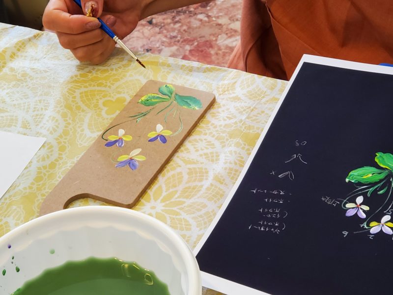今日はお二人がレッスンに参加してくださいました(^-^) 新しくスミレを練習して、ドアプレートに早速ペイントされたOさん。 初めて練習したのに、素敵な作品になりました! また、今月から入会してくださっ …