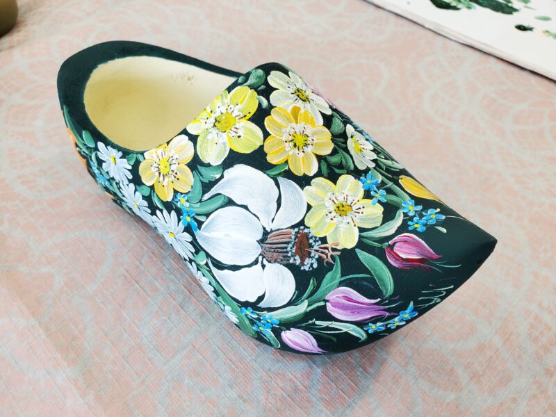 以前、レッスンで下書きした木靴をお持ち帰りしたEさん。 まだ全部は描けてないかな~、と思ったら、なんと大半をしっかり描いてきて下さいました(^-^) 残り少しのお花と、花芯など細かいところや、小花を入 …