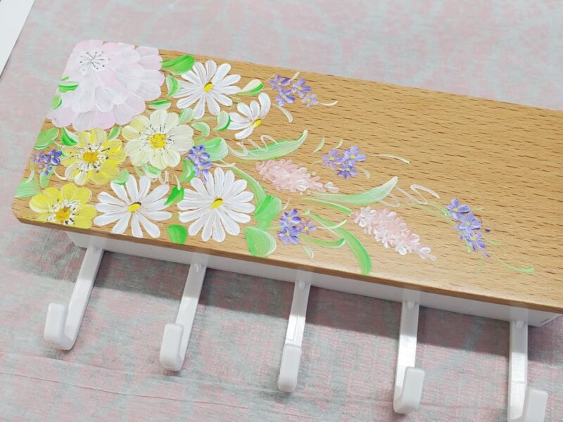 昨日のレッスン。 Eさんはシンプルなキーフックに可愛くペイント♪ いつもかわいいものを探して持参してくださり、私も参考になります(о´∀`о) 飛び入りで参加してくださったHさんは、これまでにも2回ほ …
