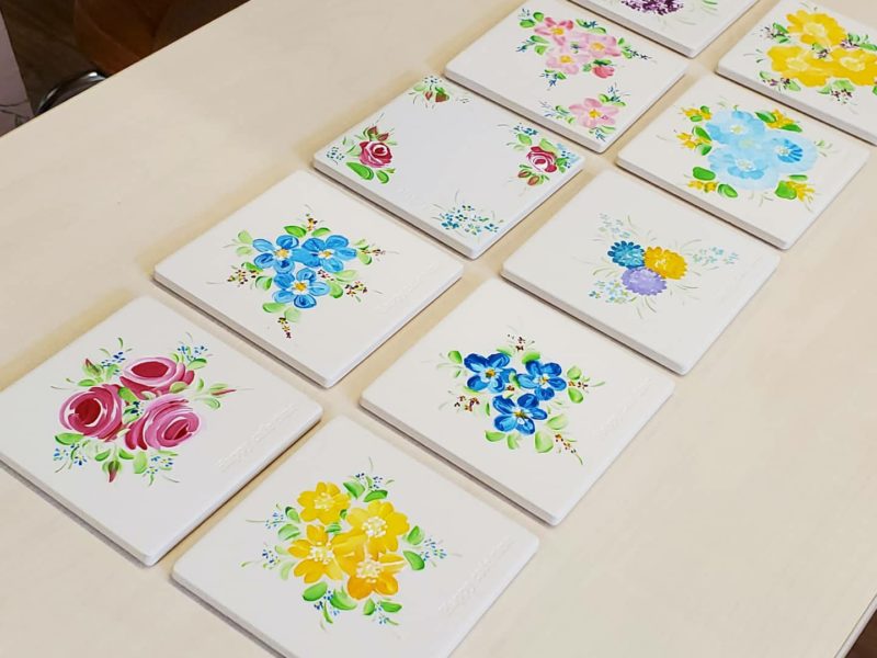 今日は、暮らしの学校安城アンフォーレ校様での「フラワーペイントでペアコースター」講座でした(^-^) ソーシャルディスタンスしっかり守っています! 白い珪藻土コースターに、いくつかの見本 …