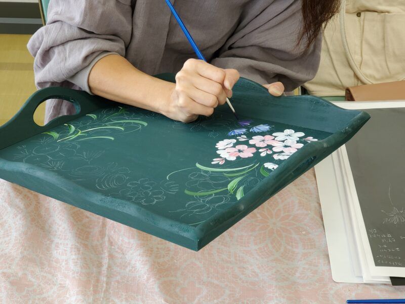 続きを読む投稿が前後しましたが、今週のレッスン風景です(*^^*) 新しいカリキュラムに入ったEさんは、桜を練習中です。 今回は大きいトレイ製作にチャレンジされます♪ 描く面が大きいので、これまでに習ったお花を …
