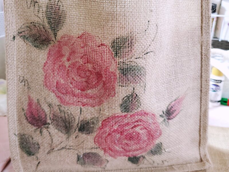 続きを読むジュートバッグへのペイントを追加オーダーしてくださいました。 白のみ、デコカラーで、その他はすべてファブリックペイント用の絵の具で描いています。 そしてペイント部分には、全体にラメをいれてあります。太 …