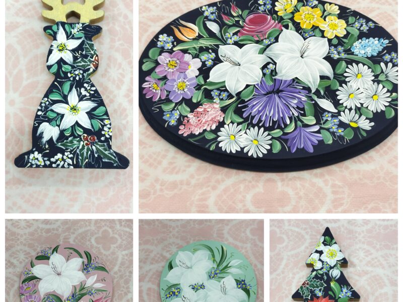 年内のレッスンは先日終了しました。 こちらは今年最後のレッスンでの作品。 少し前から描かれていた、シンプルな箱の蓋に、素敵なペイントが完成しました♪ お花が増えてきて、どんどん豪華になっていきますね~ …