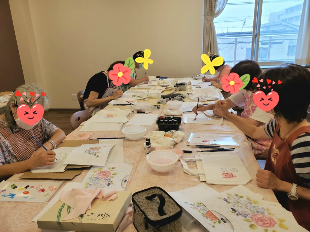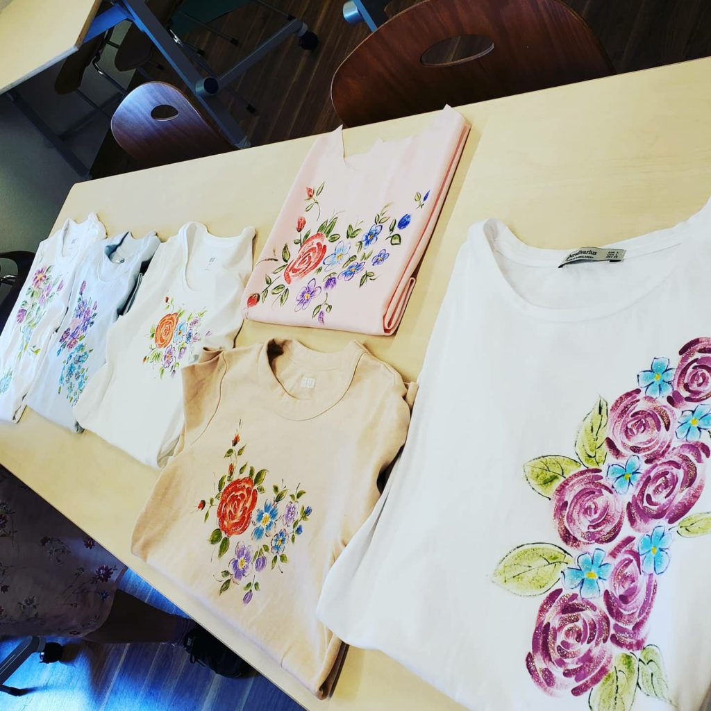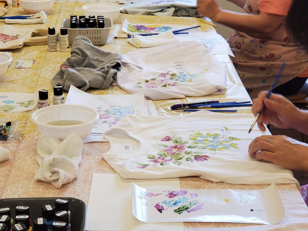 今日は、安城市の「暮らしの学校安城アンフォーレ校」様にて、「Tシャツに描くフラワーペイント」1日講座を開催させていただきました。