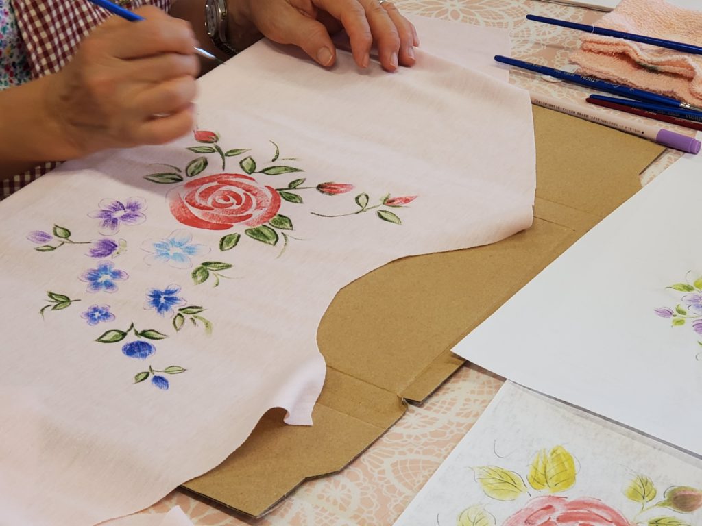いつも1日講座に参加してくださっているTさんは、なんとこれからTシャツを作る用に裁断した生地を持参されました。絵を描いたあと、Tシャツを縫うのだそうです!完全オリジナル、素晴らしいですね。