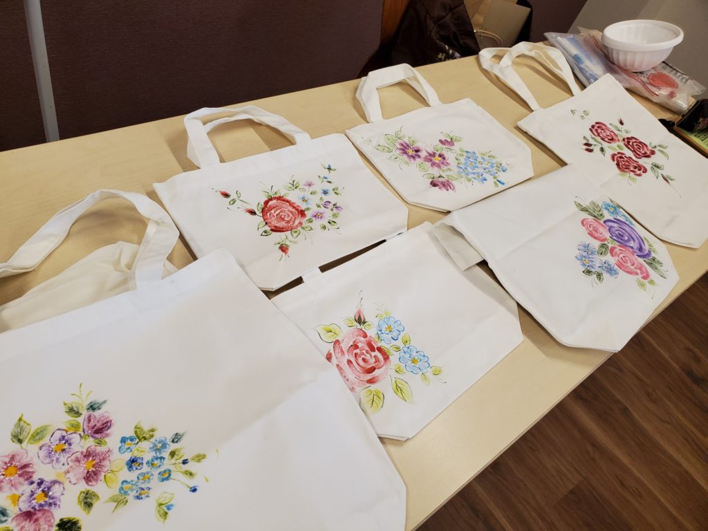 ↓Tシャツに描く前に、ミニトートに練習していただきました。