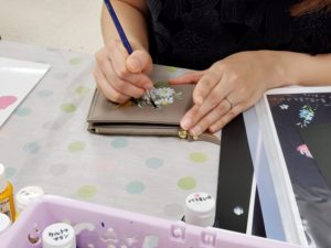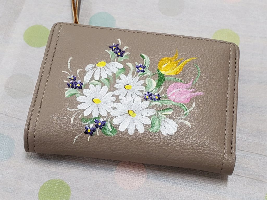 シックなお財布に、ちょっとお花を描くだけで華やかになりました♪