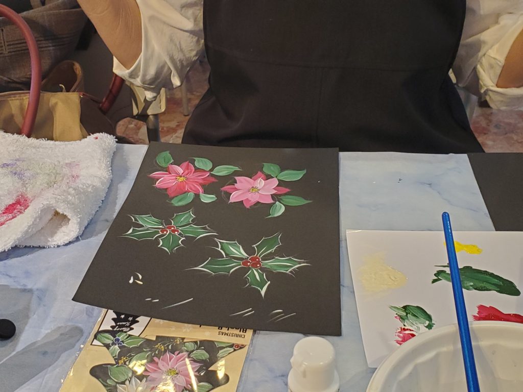 Oさんはクリスマスに向けて、初級用のお花ではないのですが、急遽ポインセチア&ヒイラギにチャレンジ♪うまく描けていますね~。