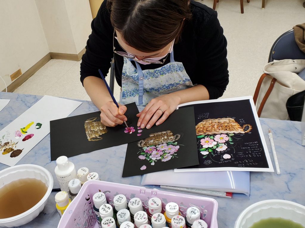2時間しっかり練習して下さいました(#^.^#)これまでにバラ、マーガレット、チューリップ、水仙、アネモネをやってきたので、ちょっとしたものにならアレンジして描けますね。今後の作品作りが楽しみです♪
