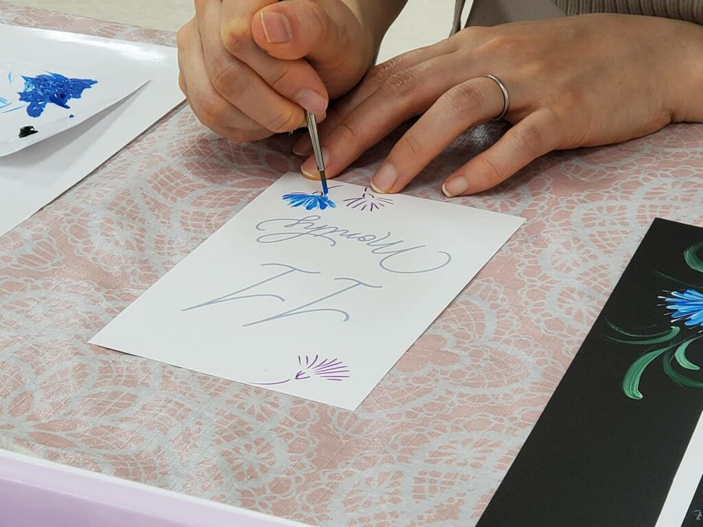 今日は久しぶりの名古屋トヨペットさんでのレッスンでした。.7月にママになるMさんが、ベビーちゃんの月齢記念写真を撮るための「月齢カード」をペイントするために持参されました。.オランダザンスをそんな素敵なことに使ってもらえるなんて感無量です♪