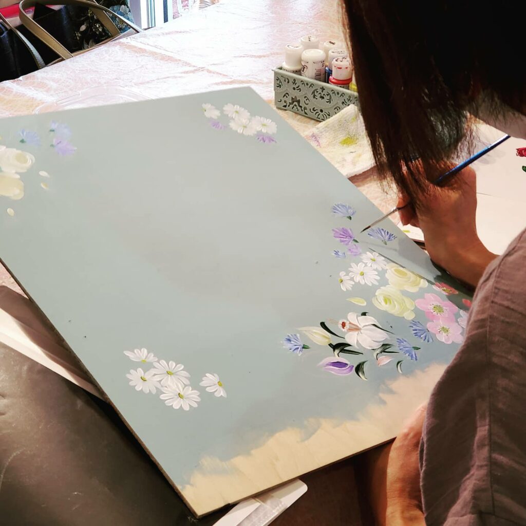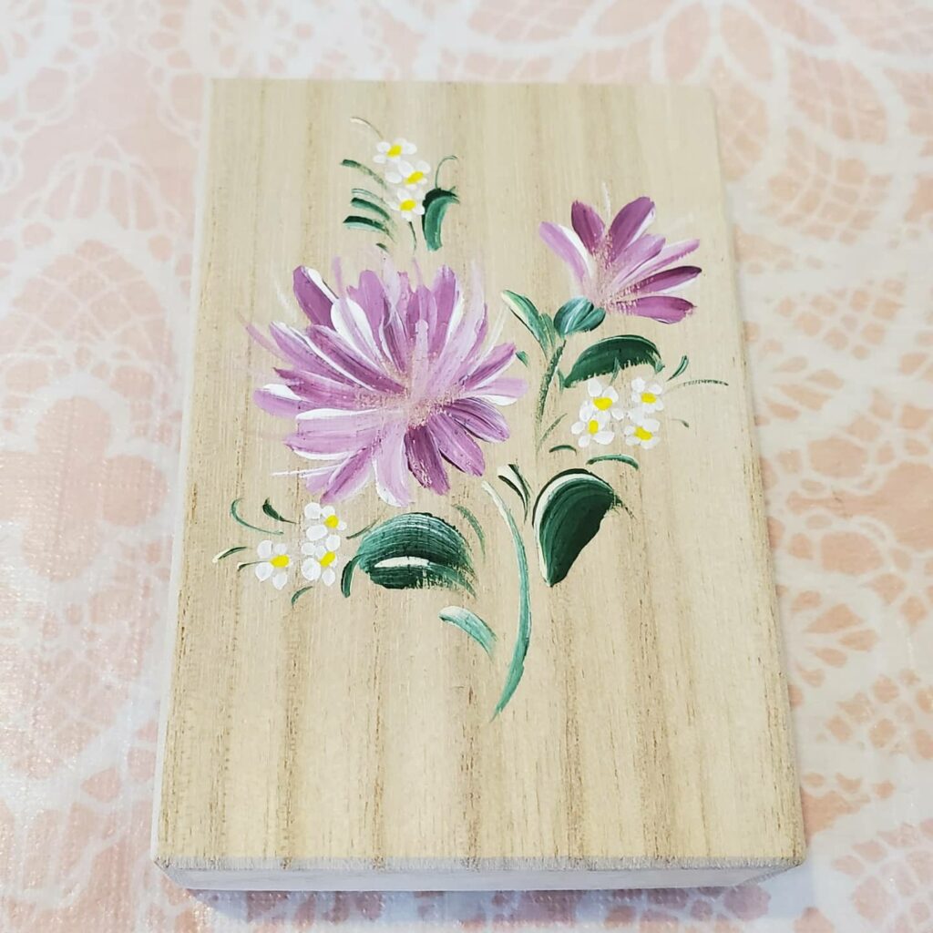 お香が入っていたという、良い香りの桐箱にペイントされました。菊のペイントがぴったりですね❗ご自宅にあるものに描いてリメイクするのも楽しいですね♪