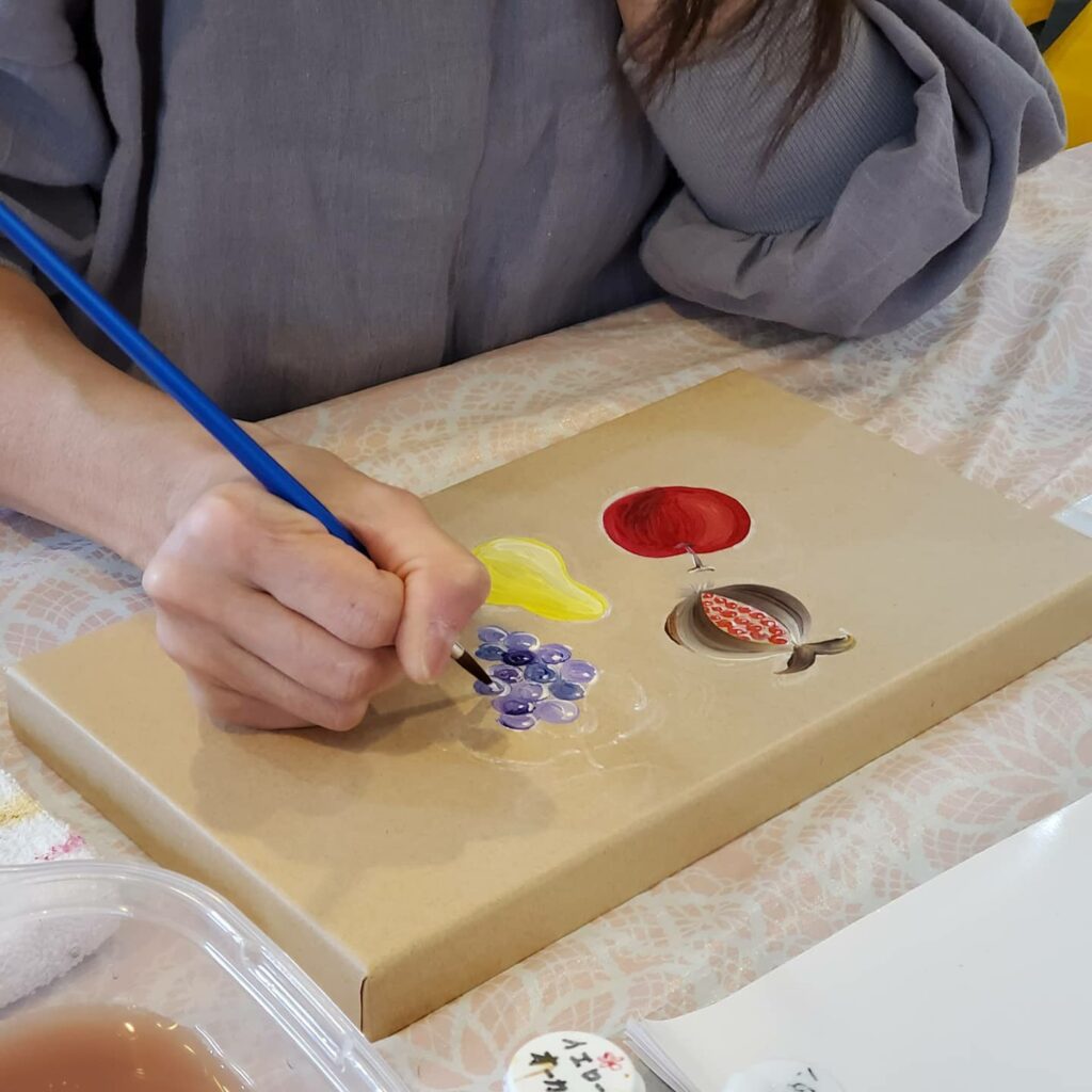 100均で買ったと言う厚紙のボックスにペイント♪いつも上手に素材を探してきて下さいます(^.^)ご参加ありがとうございました♪
