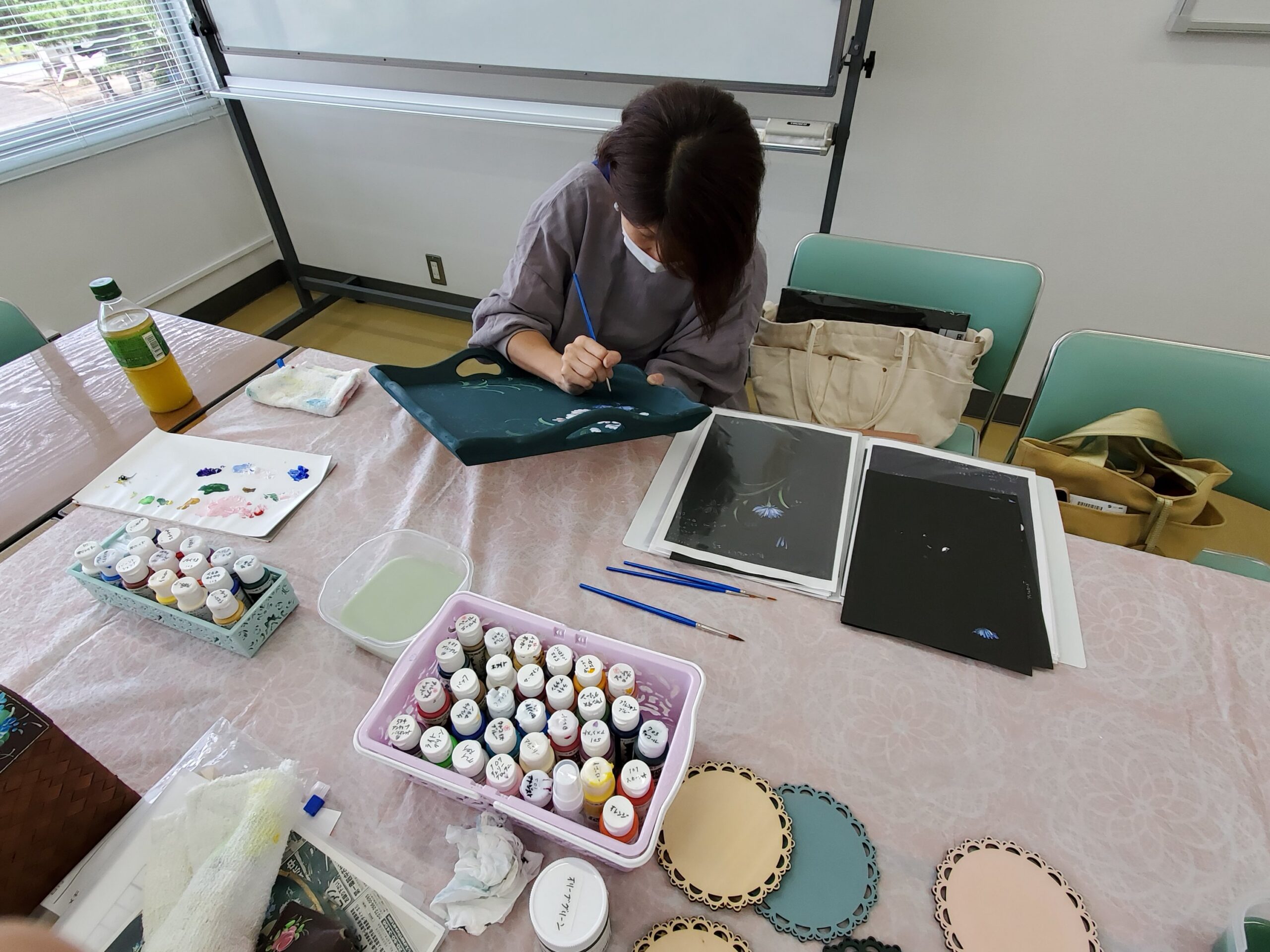 描く面が大きいので、これまでに習ったお花をたくさん盛り込んで描けます。