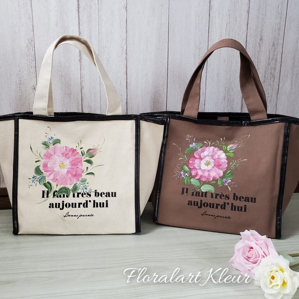 ミニバッグにフラワーペイントで華やかに♪ホワイトとブラウンの2色からお選び頂けます。
