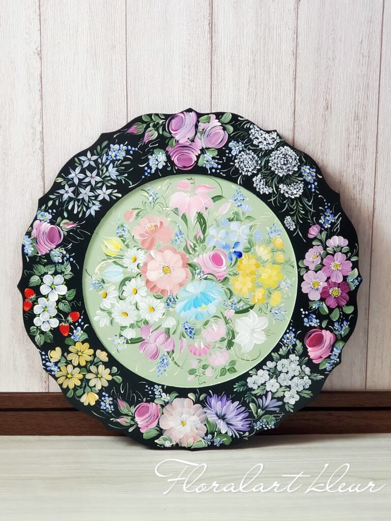 地塗りして下描きしたところです。実はこの後、真ん中の〇の部分を、グリーンに塗りなおしています。
