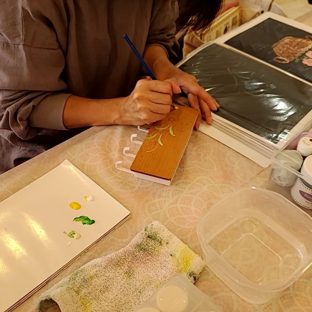 今日は、Oさんは古いメガネ立てにリメイクペイントしました。