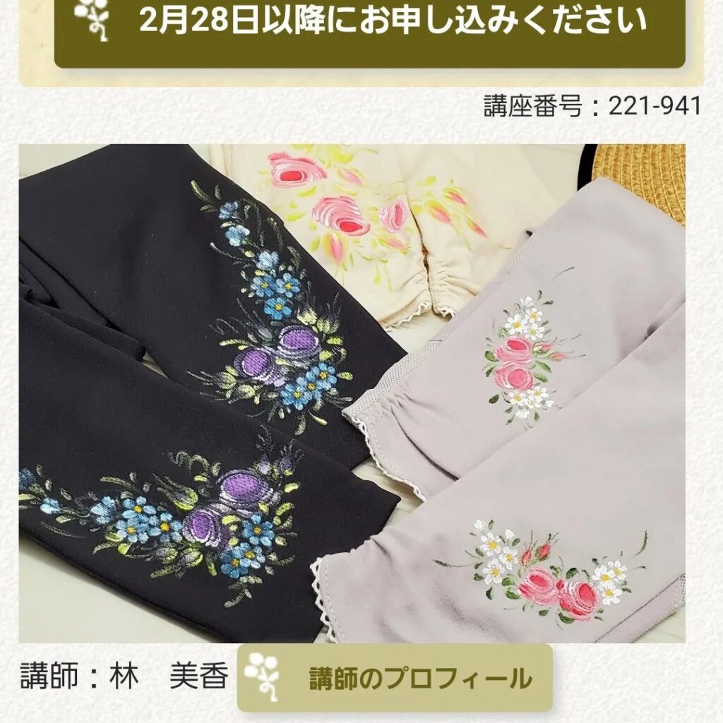 お好きなアームカバーをお持ち頂き、カモミールとバラのペイントでリメイクしましょうo(^o^)o