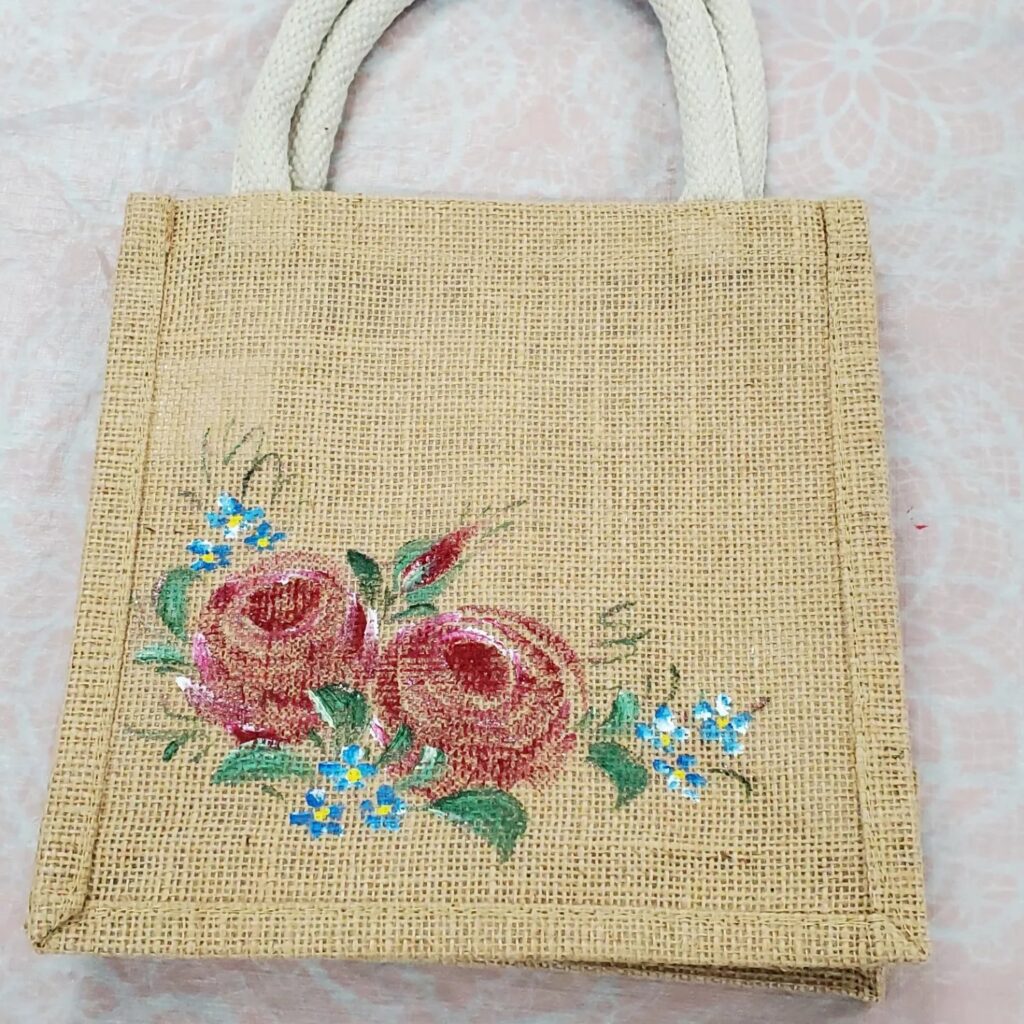 以前、体験講座に来てくださってことがあり、やったことのあるバラをもう一度練習して頂き、ジュートミニバッグに可愛くペイントされました♪