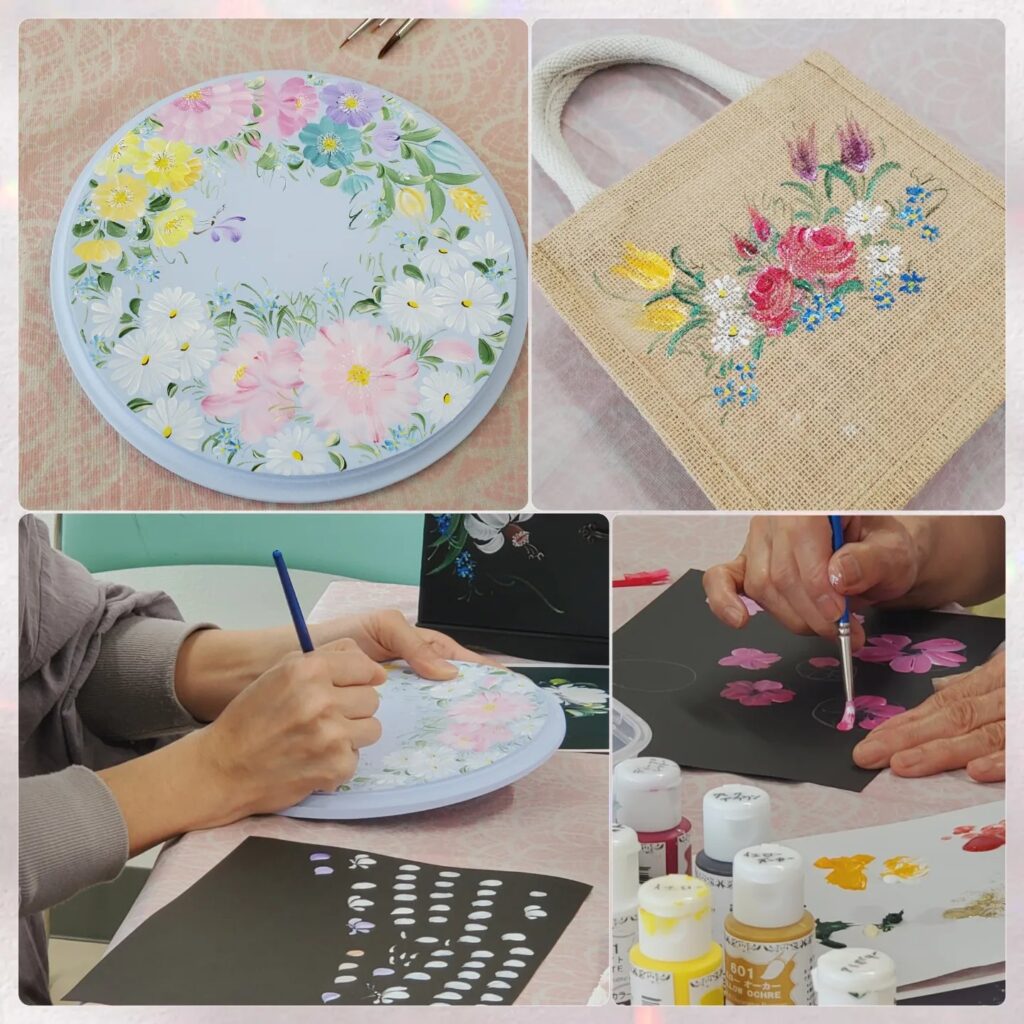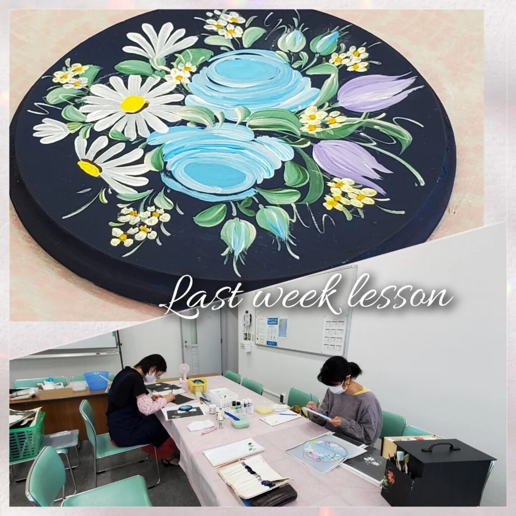 Eさんはまんまるインテリアボードを完成しました。初めてチョウチョも入れてとってもかわいく仕上がりました❤️
