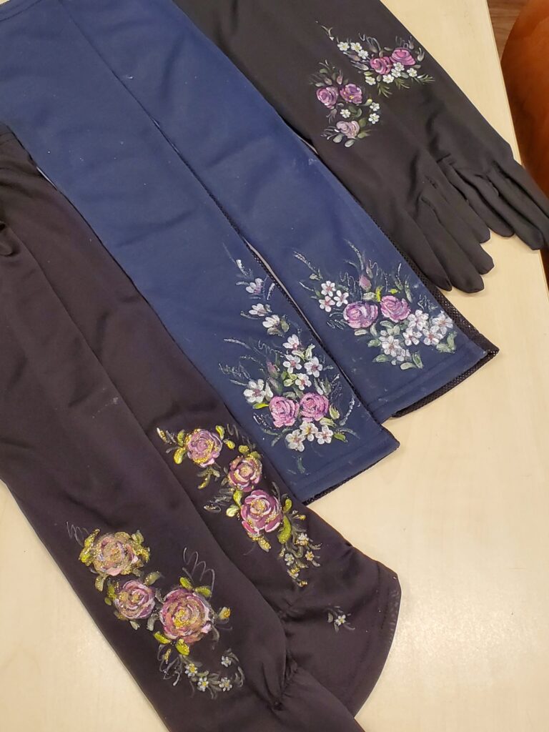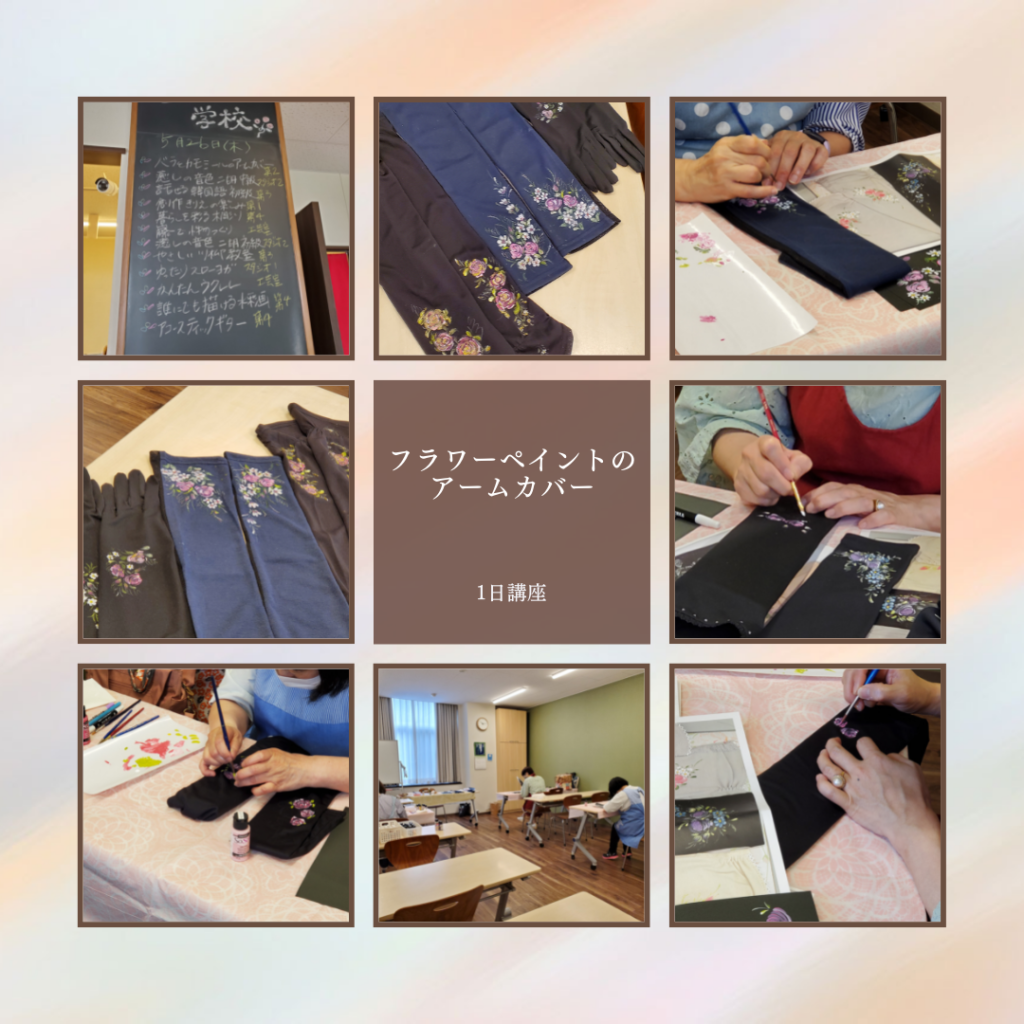 それぞれお手持ちのアームカバーをお持ち頂き、お好きなカラーでフラワーペイントしました。