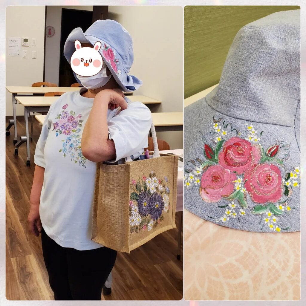 ↓こちらは、以前の講座で描いたTシャツと帽子スタイルで来てくださったIさん。愛用してくださっているそうで、とても嬉しいです(*^^*)