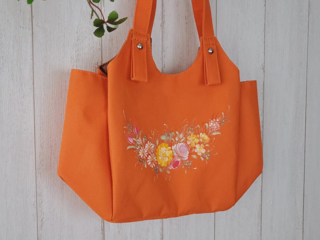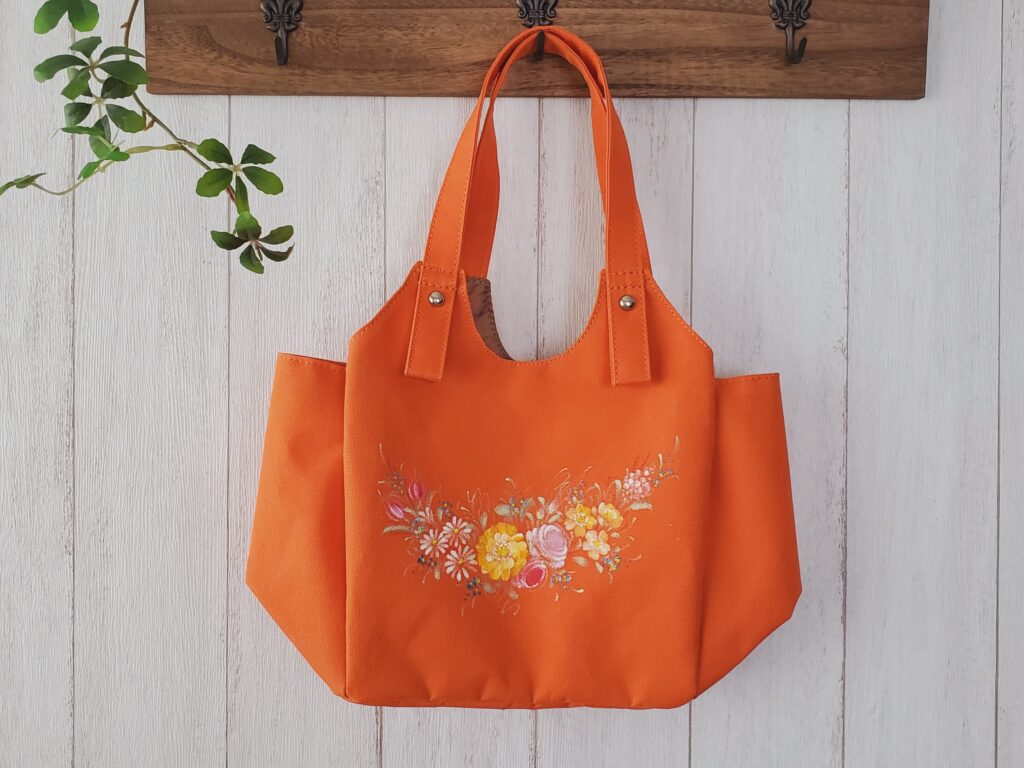 先日、きれいなオレンジカラーのミニバッグへペイントをオーダー頂きました。