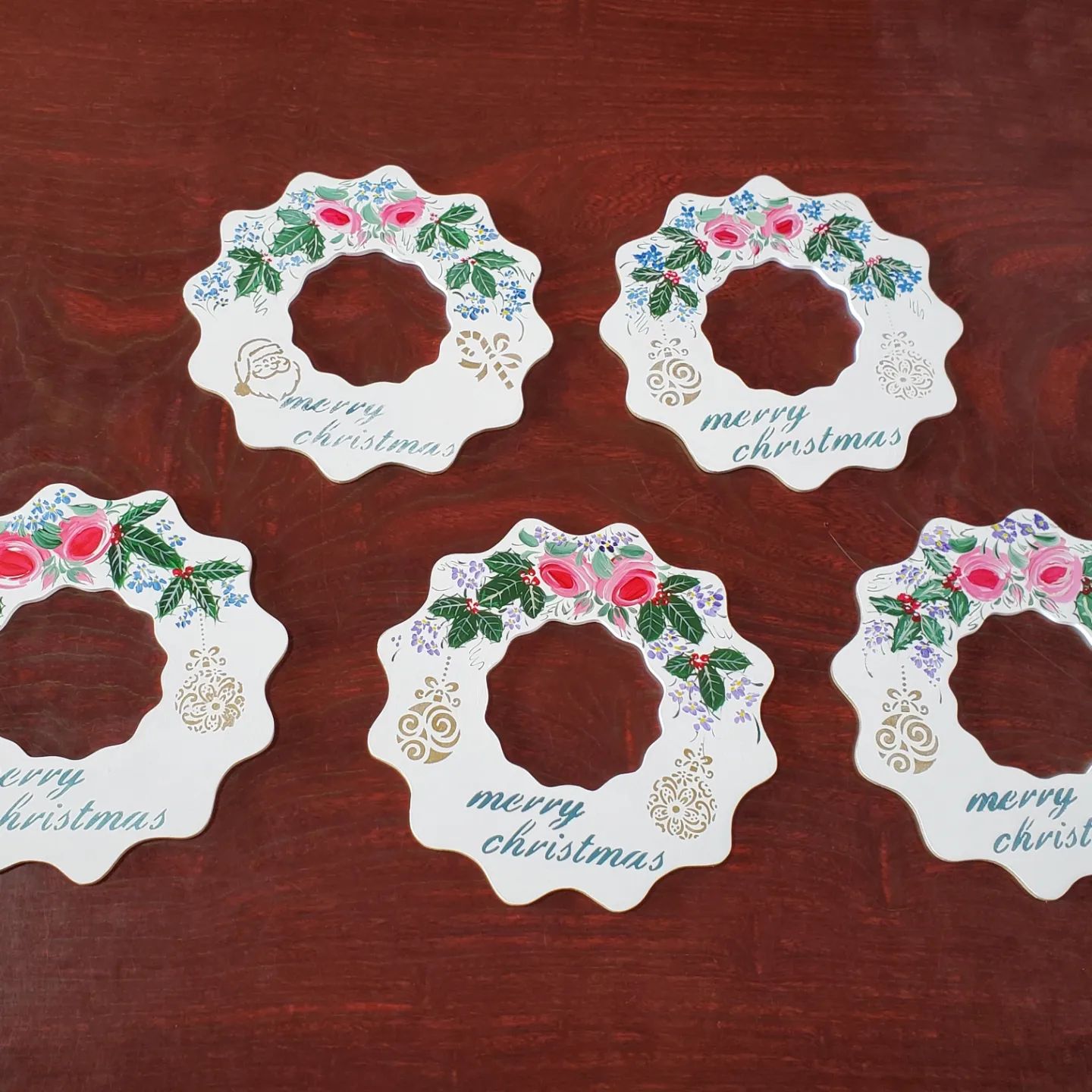 バラと柊を描き、ステンシルで「Merry Christmas」も綺麗に入れて下さいました。ステンシル、便利ですね♪