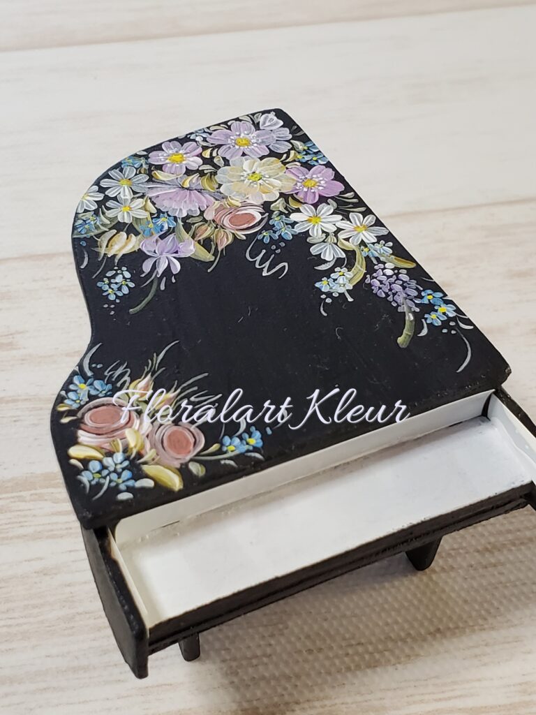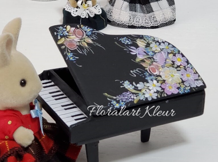↓全体を黒に塗り、お花をペイントしました。色を黒くするだけでピアノらしさが出ますね(*^^*)