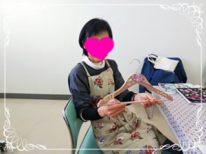 Kさんはお顔は隠してご登場いただきました。ハンガーはとても豪華な仕上がり°˖✧◝(⁰▿⁰)◜✧˖°