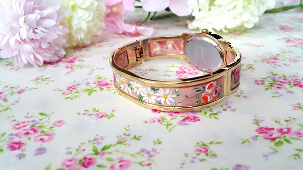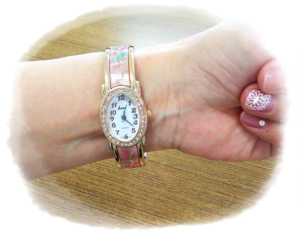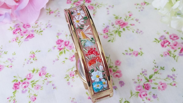いつもは大き目の作品が多いのですが、今回は腕時計に描いてみました。