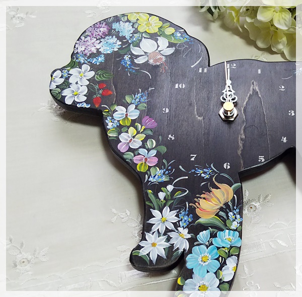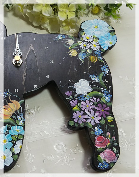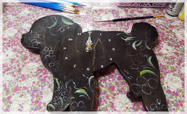 以前、黒猫時計に描いていましたが、わんこ時計を見つけたので、こちらも描いてみました。
