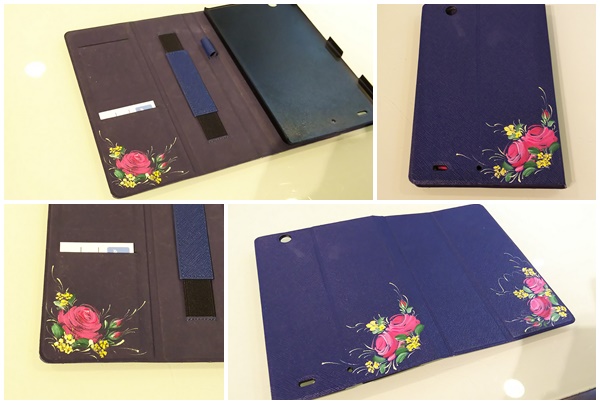 iPadミニのケースを持参され、前面と裏面、中面にも綺麗にバラと小花を描かれました。